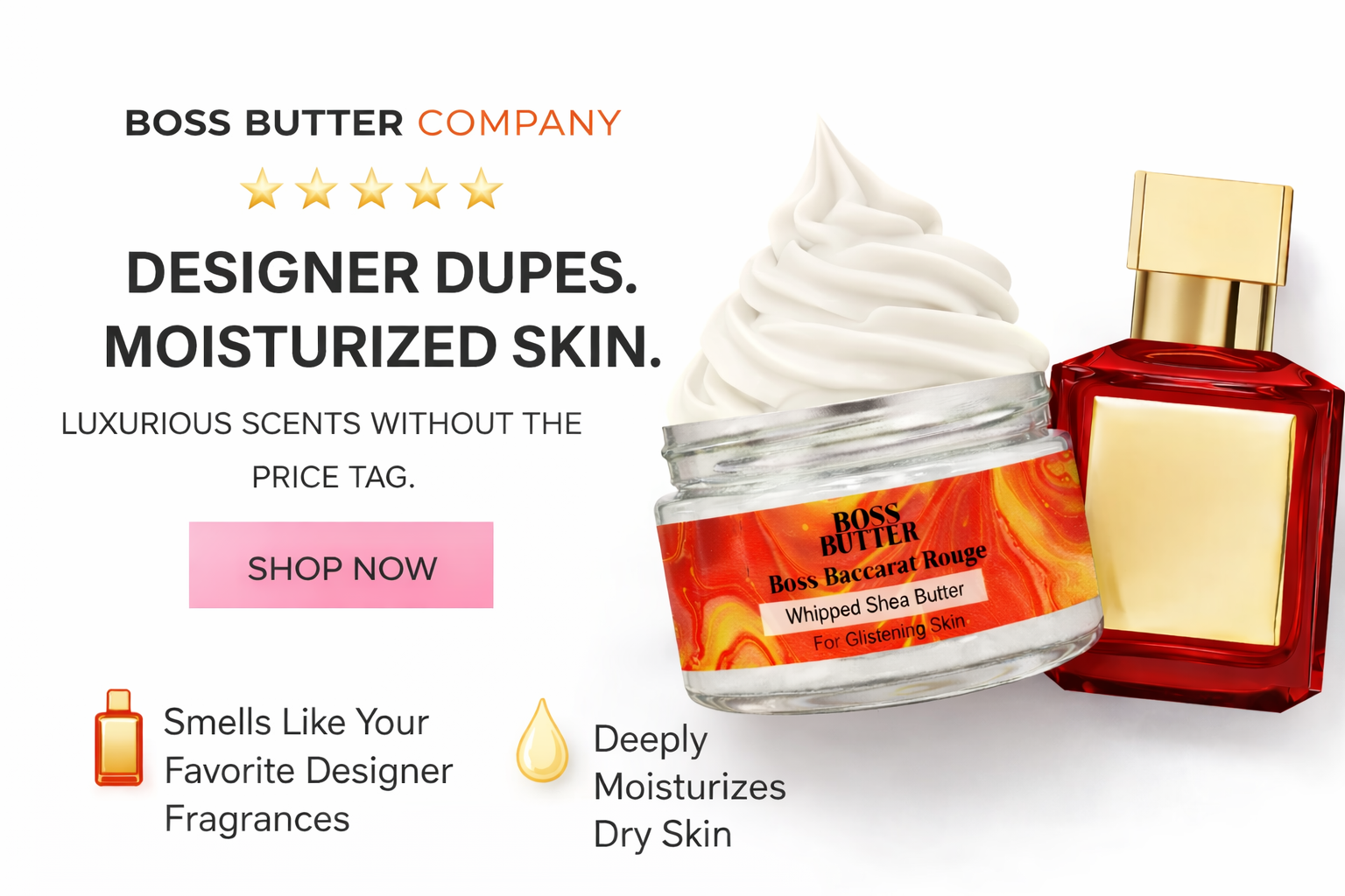 Luxury fragrance dupes in skin-safe whipped shea butter & perfume oils & perfumes